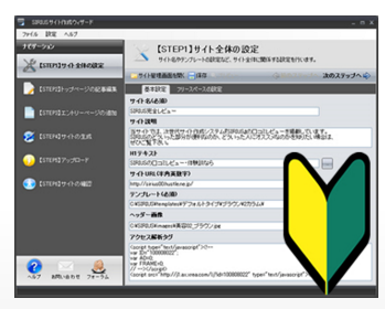 初心者モードでは、表示される説明にしたがって1つずつ項目を埋めていくだけで、初心者でも簡単にサイトを作ることができるようになっています。