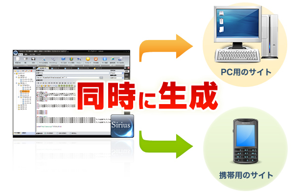 SIRIUS(シリウス)には、携帯サイトも同時に作成してくれる機能があります。