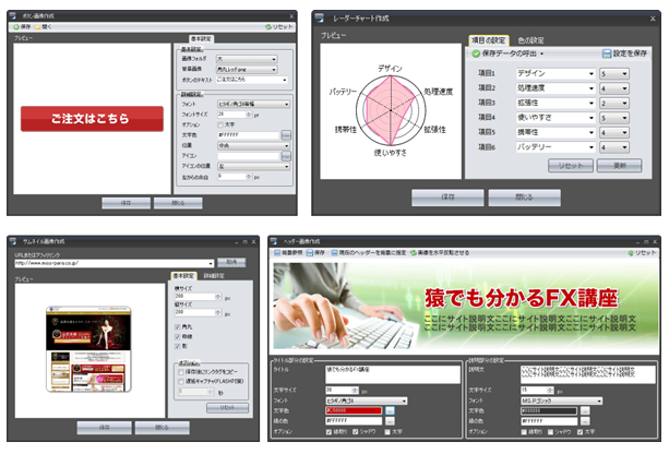 ヘッダー画像やロゴ画像。ボタン画像やレーダーチャートが簡単に作成できます。